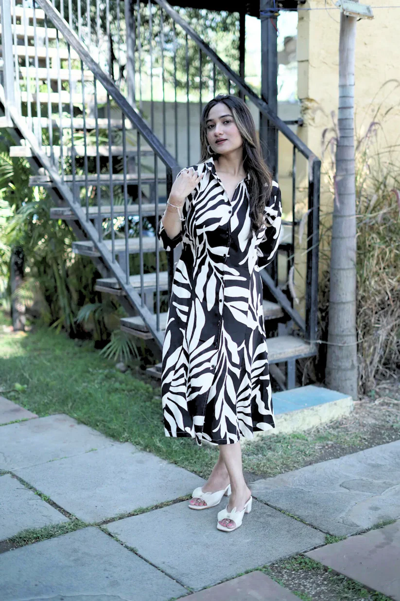 Dress. Featuring a classic knee-length design and three-quarter regular sleeves, this dress seamlessly blends sophistication with comfort. Crafted from premium rayon fabric, it offers a soft, breathable fit, making it perfect for casual outings, workwear, or semi-formal events. Embrace the New Basics trend with this versatile and timeless addition to your wardrobe.