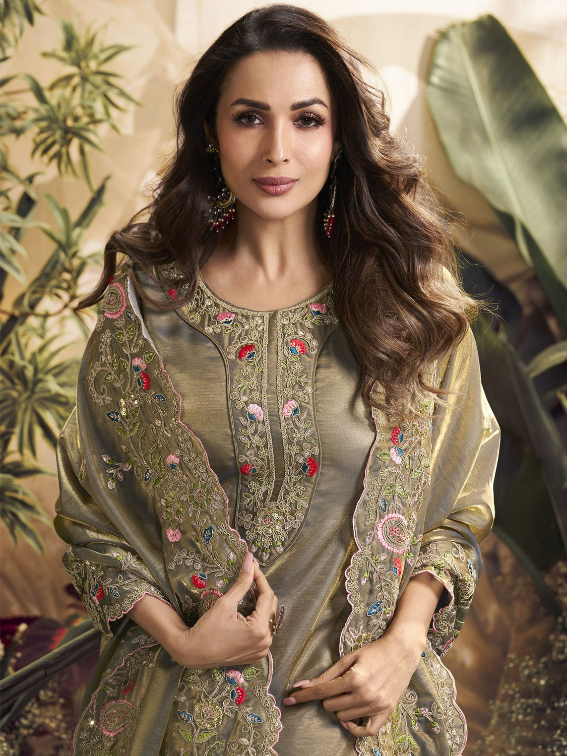 Details: Green Mystic Saree - Embellished with embroidered borders | Embroidered fish motifs on palla with mystic foil on vertical stripes all over
