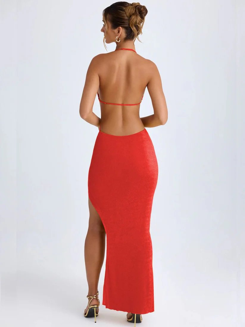 Make a bold statement with our Red Solid Bodycon Maxi Dress, designed for the confident woman who loves to shine. This stunning dress effortlessly combines style and sophistication, featuring a sleek bodycon silhouette that accentuates your curves and ensures you feel fabulous for any occasion.